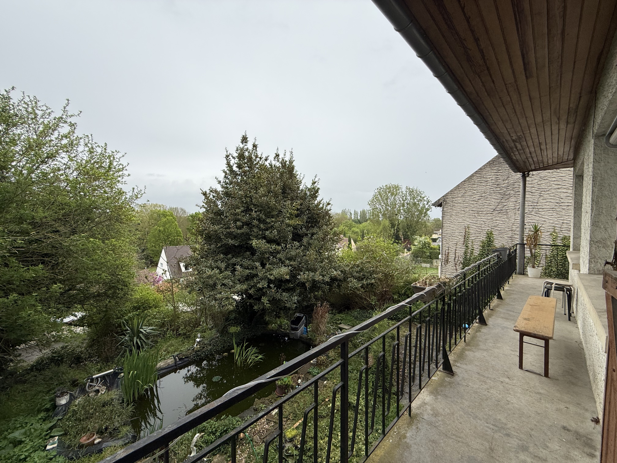 À l’extérieur, vous profiterez d’un agréable jardin arboré de 886 m², agrémenté d’un bassin avec carpes koï, apportant charme et sérénité à l’ensemble.